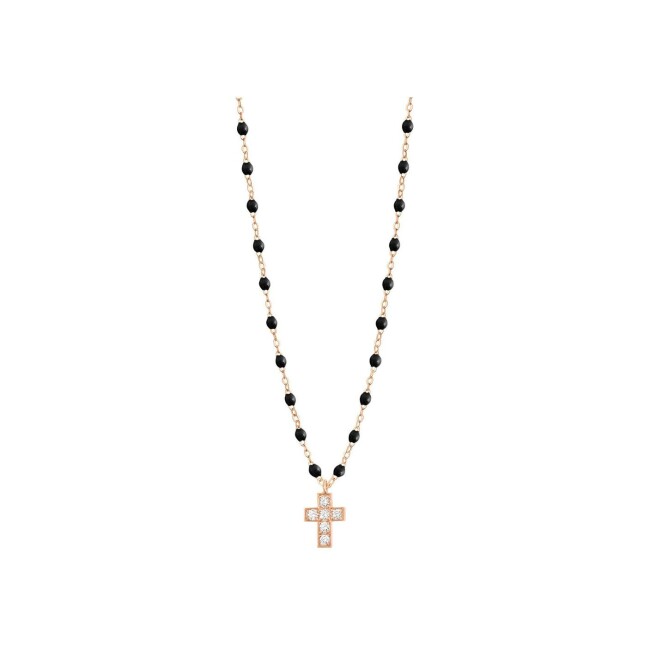 Gigi Clozeau Croix necklace, rose gold, black resin and diamonds, size 42cm