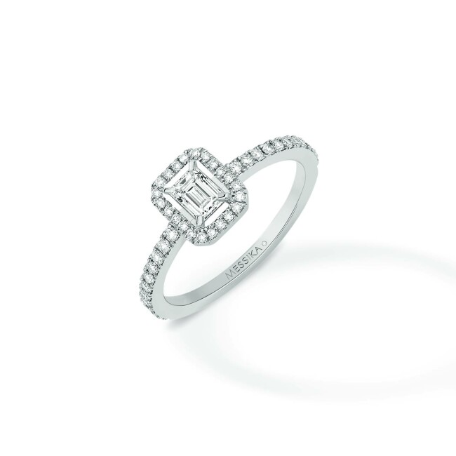 Messika M-Love engagement ring, white gold and emerald-cut diamond
