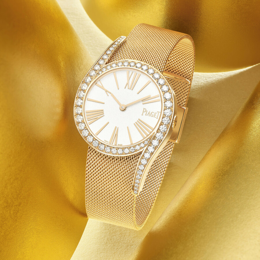 Une forme reconnaissable entre toutes, la griffe créative de Piaget. Créée en 1973, la Limelight était au sommet de ce que l’on nommait la Piaget Society et qui comptait en ses rangs des membres de prestige tels que Salvador Dali, Jackie Kennedy, Elizabeth Taylor, Andy Warhol, Cary Grant ou Sami Davis Jr. Avec ses courbes sensuelles, son boîtier au profil cambré et ses cornes asymétriques qui s’allongent de chaque côté du boîtier pour venir rejoindre le bracelet, la Limelight Gala de Piaget s’inspire de l’esprit extravagant des années 1960. L’interprétation moderne de la Limelight Gala reprend le design de l’époque, caractérisé par un boîtier et des cornes parfaitement intégrés, assortis à un tourbillon de pierres précieuses, de cadrans décorés et de bracelets en or.