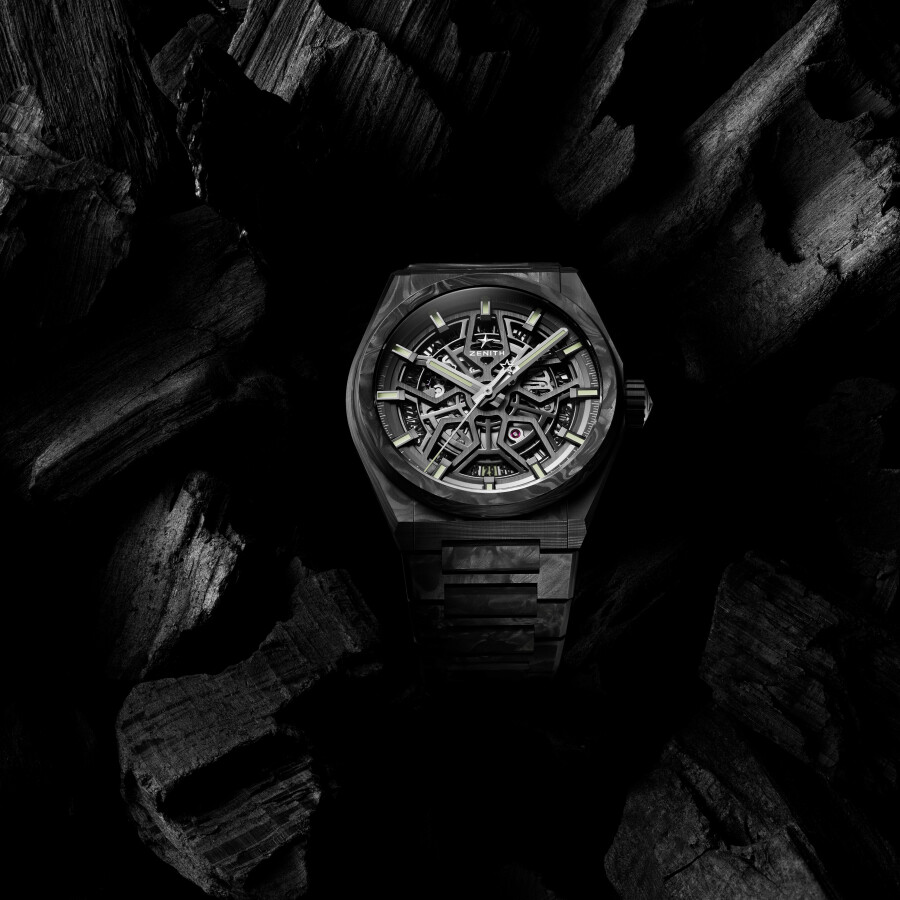 La nouvelle création horlogère de Zenith se repose sur son héritage tout en apportant une franche touche de modernité. Ce gardetemps est intégralement réalisé en fibre de carbone – bracelet compris. Une véritable complication esthétique qui se fera oublier au poignet : 65 grammes, bracelet compris. C’est trois fois moins qu’une montre traditionnelle. Ce matériau a été choisi par Zenith pour ses deux principales qualités : extrême résistance et légèreté. Comme les motifs dessinés par le matériau sont totalement aléatoires, chaque Defy Classic Carbon est, en elle-même, une pièce unique, patiemment usinée suivant des tolérances infinitésimales. Pour parfaire cette esthétique hors norme, Zenith a dessiné une montre sans cadran. Son mouvement Elite possède une ancre et une roue d’échappement en silicium, garantes de la précision chronométrique la plus élevée. La lisibilité de la pièce est garantie par le vert brillant luminescent du Super-LumiNova apposé sur les aiguilles et les index. Cas rare dans la Haute Horlogerie, la Zenith Defy Carbon n’est pas en série limitée. La pièce est dès aujourd’hui offerte, sans restriction, à tous les amateurs d’une Haute Horlogerie sans compromis et hors des sentiers battus.