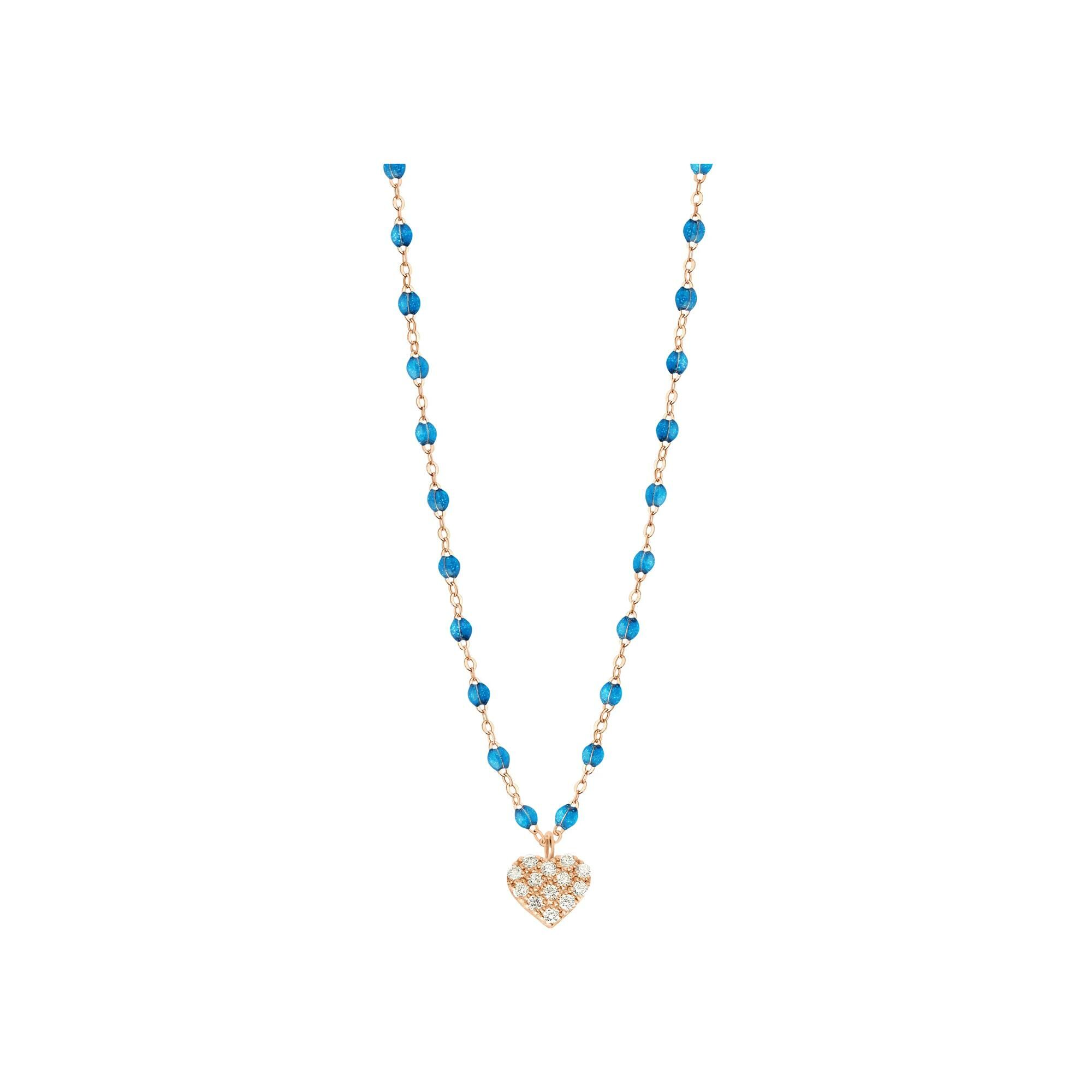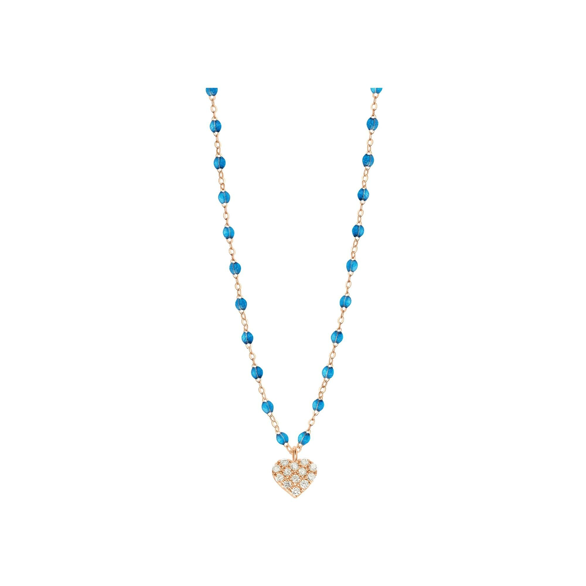 Gigi Clozeau In Love necklace in rose gold, azure resin and diamonds, size 42cm