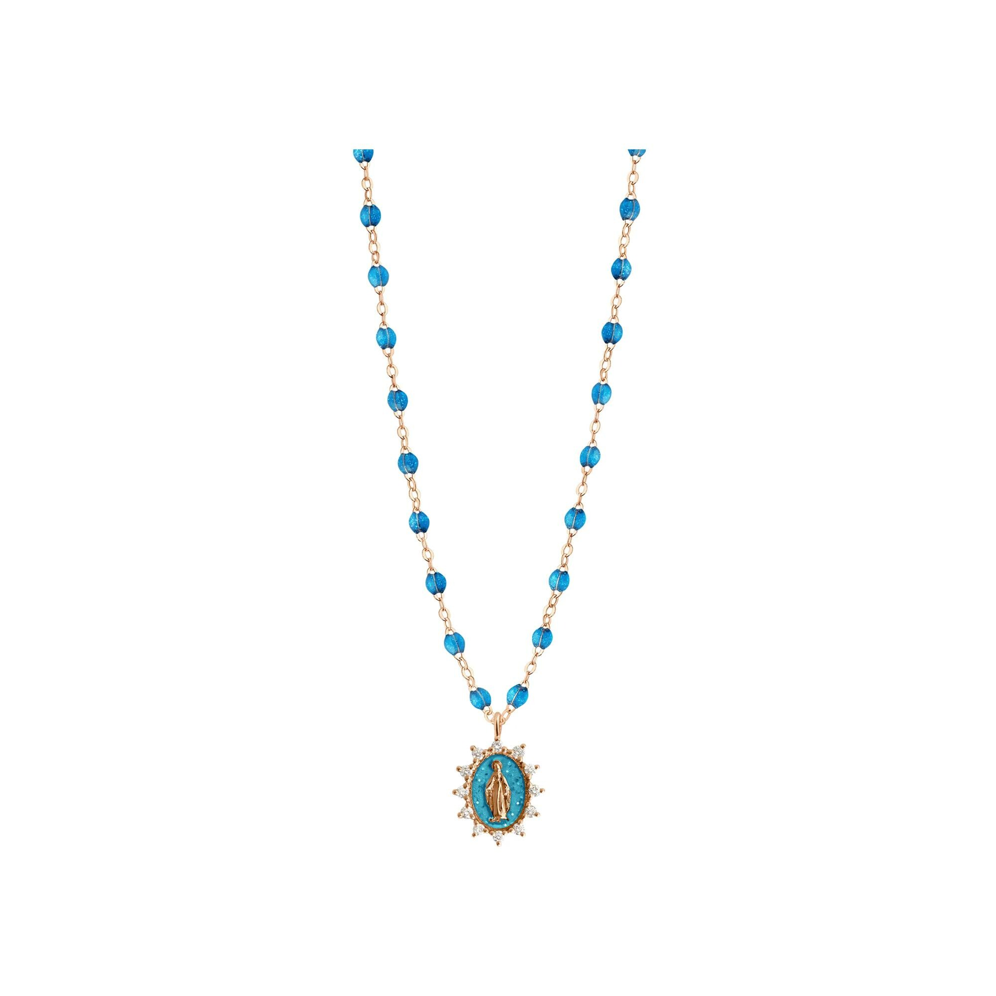 Gigi Clozeau Madone necklace in rose gold, azure resin and diamonds, size 42cm