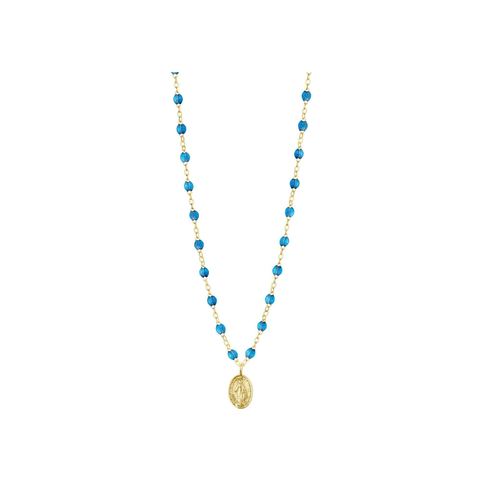 Gigi Clozeau Madone necklace in yellow gold and azure resin, size 42cm