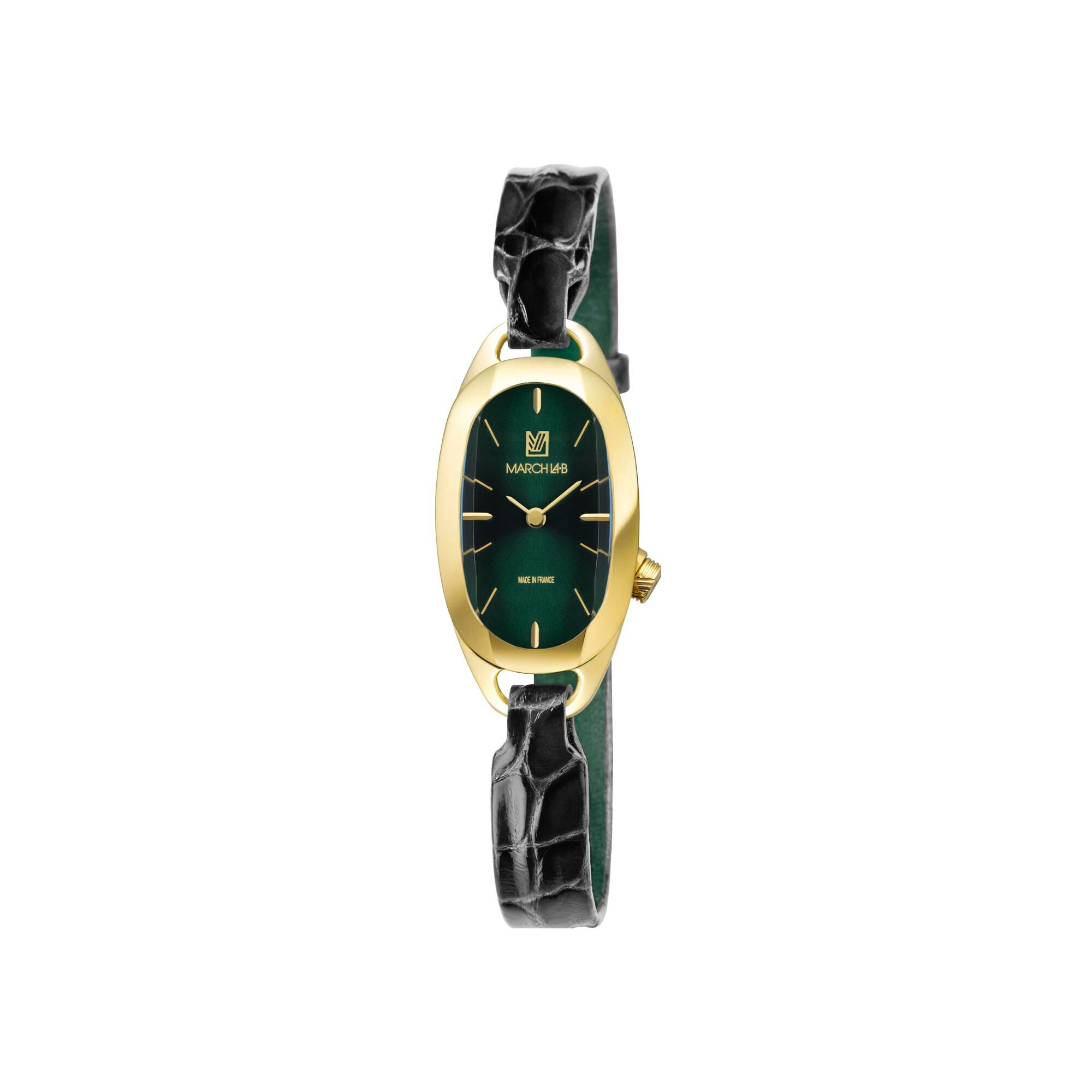March LA.B OBLONGUE ELECTRIC 20 MM Watch - EMERALD - Black Alligator