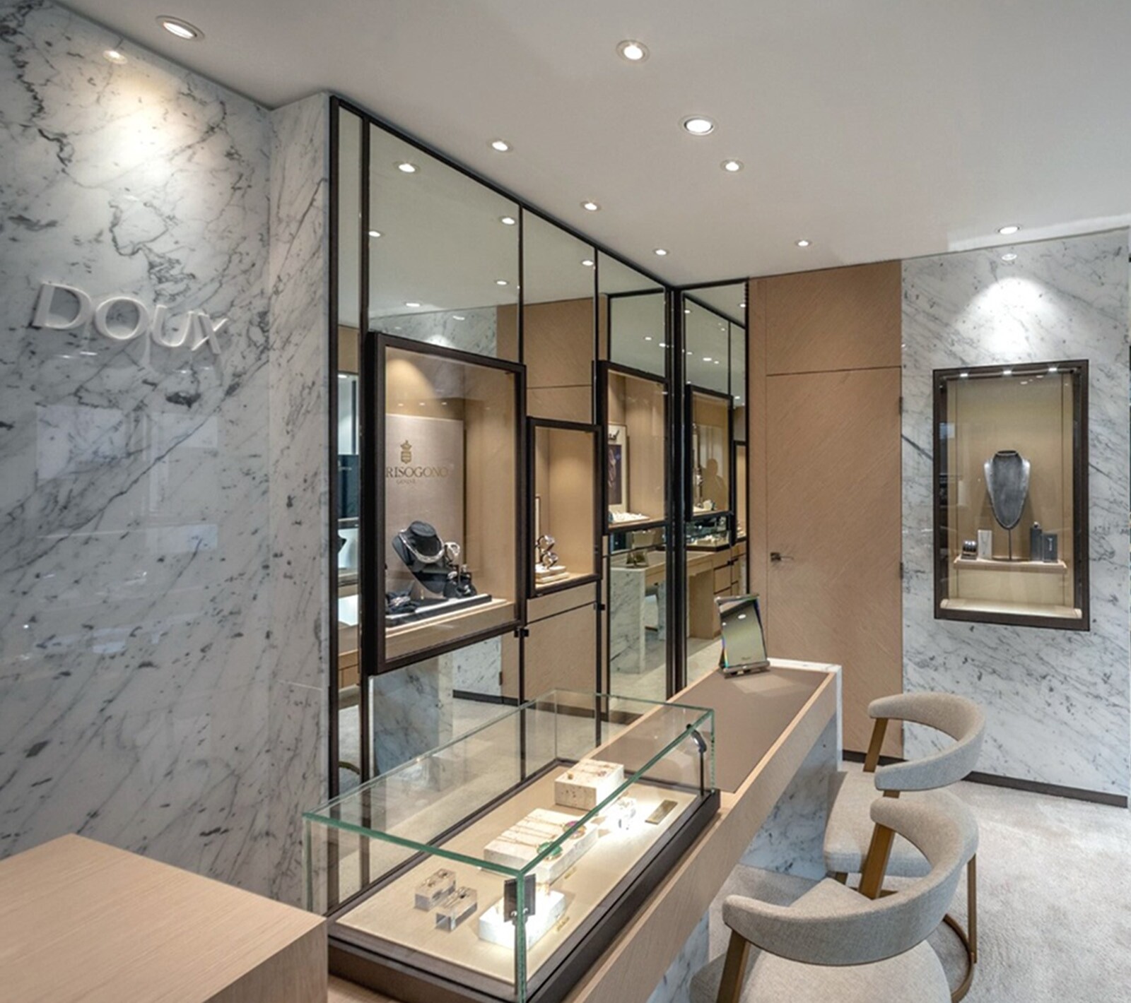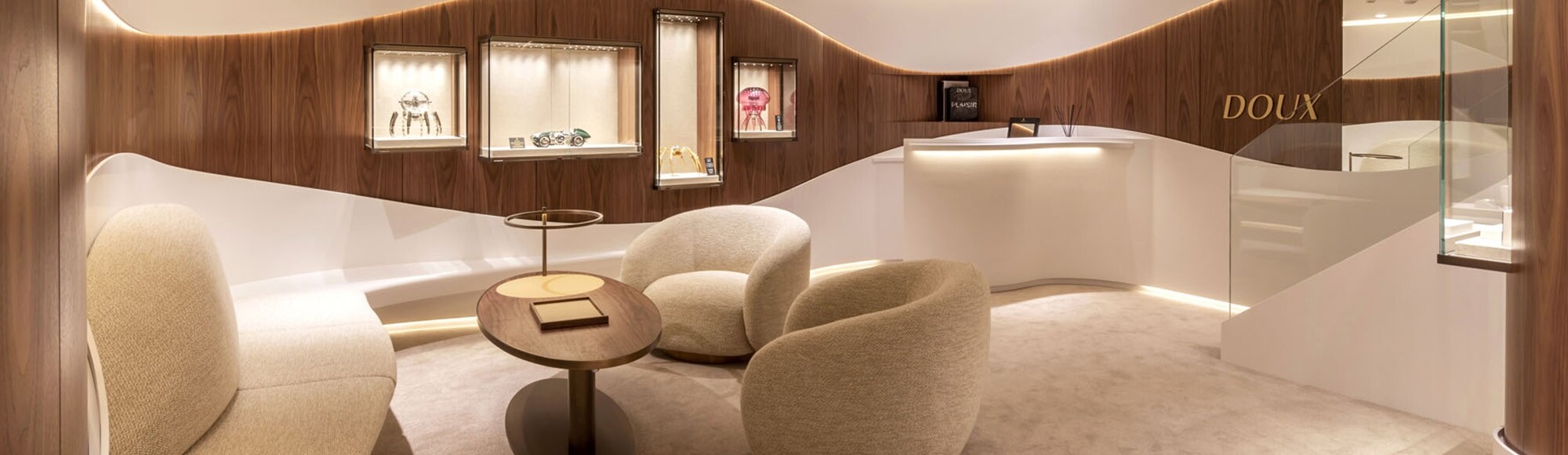 Revendeur des plus grandes maisons d’horlogerie et de joaillerie, Doux Joaillier possède également ses propres ateliers pour la création de bijoux sur-mesure et certifiés, la réparation et l’entretien des montres, et une offre horlogère de seconde main.