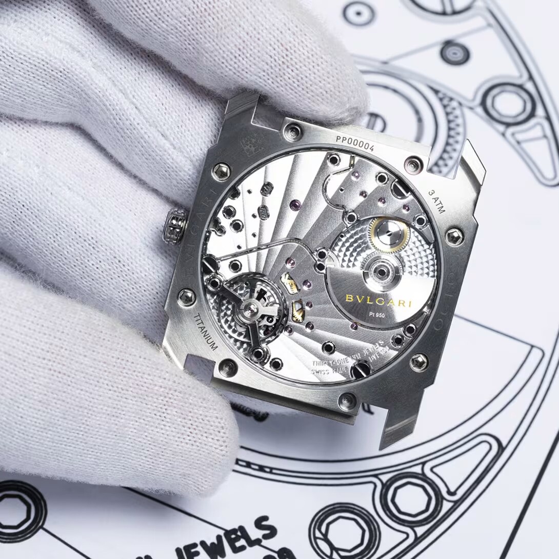 La Octo Finissimo 37 mm n'est pas simplement une Octo Finissimo 40 mm mise à l'échelle. C'est une montre entièrement repensée depuis son mouvement, dont le volume a été réduit de 20 % par rapport à celui de la version 40 mm — un exploit qui a nécessité trois années de développement au sein de la manufacture suisse de Bvlgari.