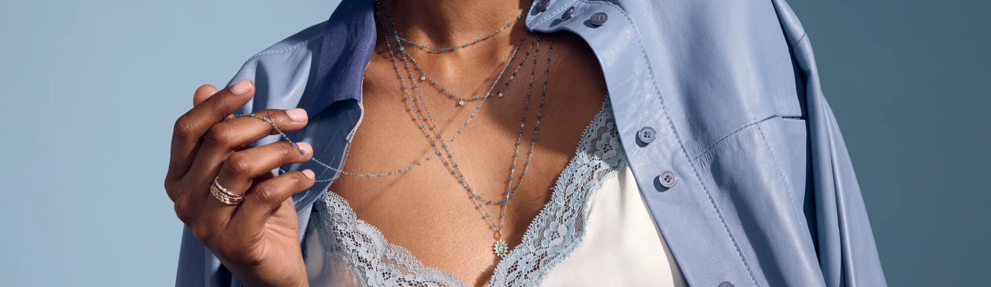 Les campagnes de la saison le montrent avec naturel : des colliers superposés à différentes longueurs, des bracelets empilés au poignet, une liberté de composition totale qui respecte néanmoins une certaine cohérence de style.