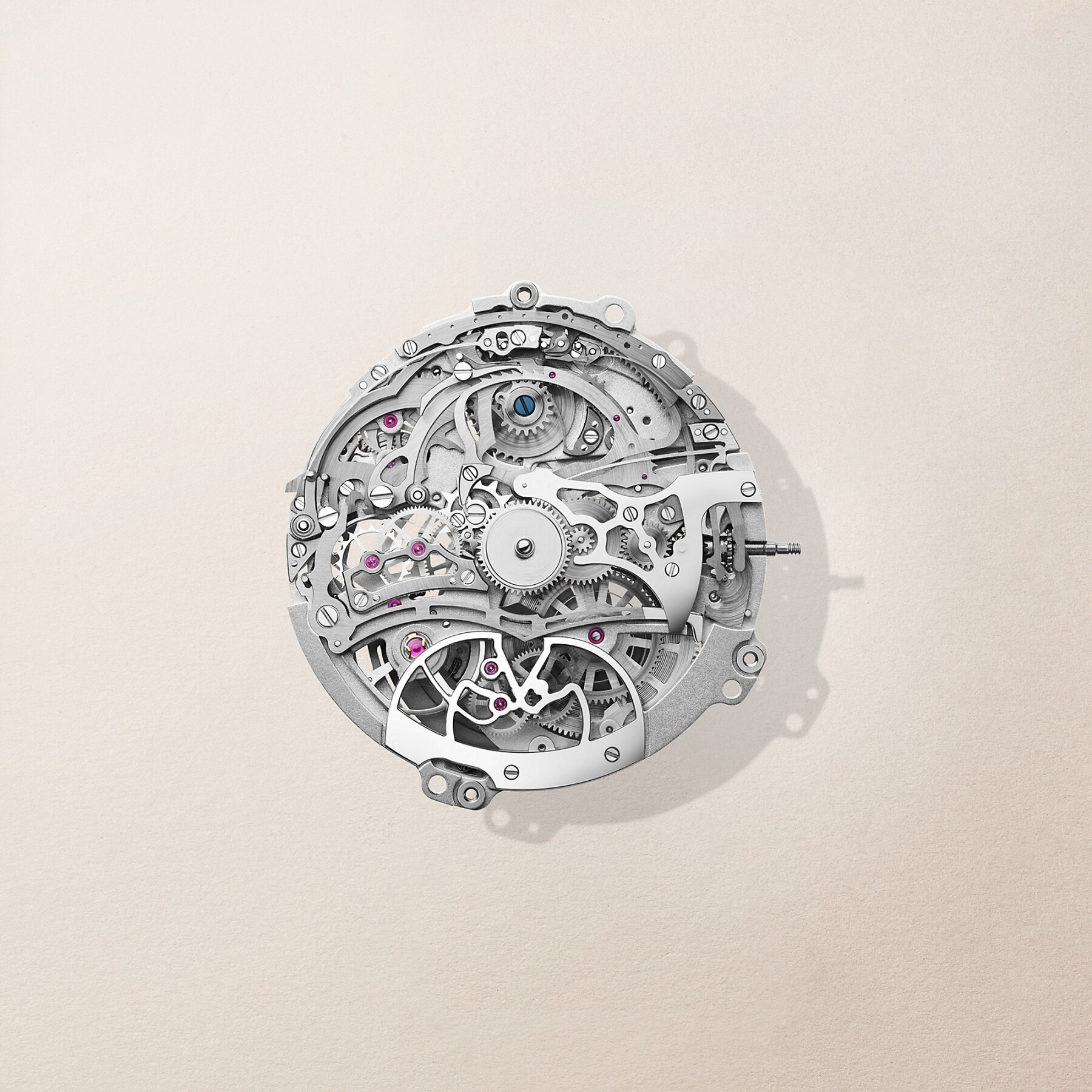 Ce mouvement n'est pas seulement beau à regarder : il sonne. L'Arceau Samarcande est dotée d'une répétition minutes — complication suprême de l'horlogerie mécanique, qui fait résonner le temps plutôt que simplement l'afficher. Logés dans le boîtier en or gris ou en or rose, les marteaux de la répétition frappent le timbre avec une précision et une musicalité qui tiennent autant du savoir-faire horloger que de l'art de l'orfèvre.