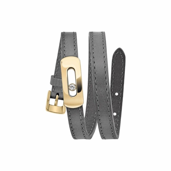 My Move Bracelet Messika My Move en or jaune et diamant sur cuir gris graphite