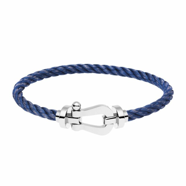 Force 10 Bracelet FRED Force 10 Grand Modèle en or blanc, câble en acier bleu jean