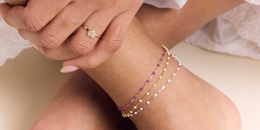 Solaire et emblématique, la cheville Classique Gigi Clozeau reprend les codes iconiques de la maison : une chaîne délicate en or rose 18 carats ponctuée de fines perles de résine colorées. Une création légère et joyeuse, pensée pour accompagner chaque pas avec élégance.