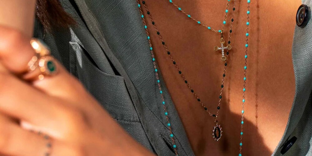 Les bijoux Gigi Clozeau sont fabriqués dans les ateliers familiaux, Gigi n'utilise que des matériaux précieux pour ses bijoux : De l'or 18 carats, des diamants, et une sublime résine connue pour son éclat et sa qualité. Cette résine haut de gamme offre une riche palette de couleurs. Son application artisanale sur des chaînes en or rose, jaune ou gris est tout un art, le résultat d’un travail d’équipe et d’une technique mise au point par Alain Clozeau.