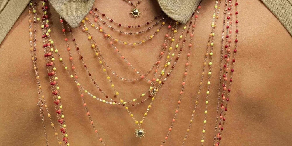 Les bijoux Gigi Clozeau sont fabriqués dans les ateliers familiaux, Gigi n'utilise que des matériaux précieux pour ses bijoux : De l'or 18 carats, des diamants, et une sublime résine connue pour son éclat et sa qualité. Cette résine haut de gamme offre une riche palette de couleurs. Son application artisanale sur des chaînes en or rose, jaune ou gris est tout un art, le résultat d’un travail d’équipe et d’une technique mise au point par Alain Clozeau.