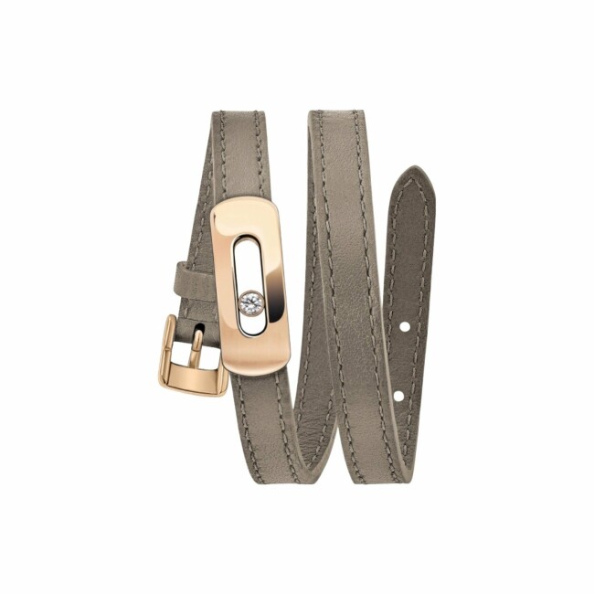 My Move Bracelet Messika My Move en or rose et diamant sur cuir gris graphite