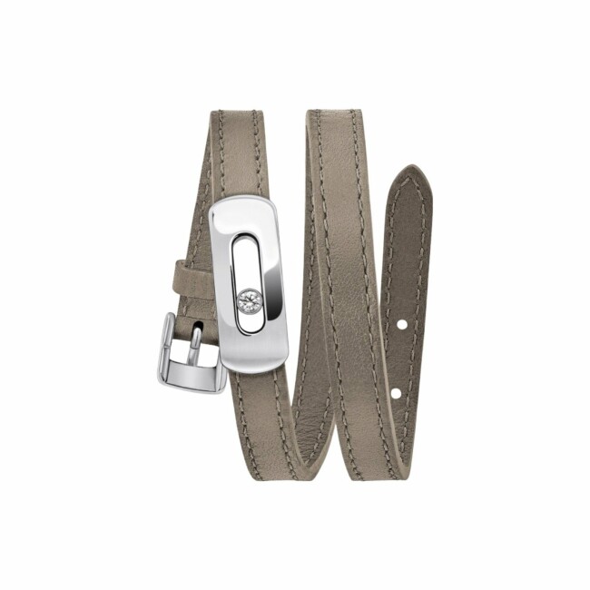 My Move Bracelet Messika My Move en or blanc et diamant sur cuir gris graphite