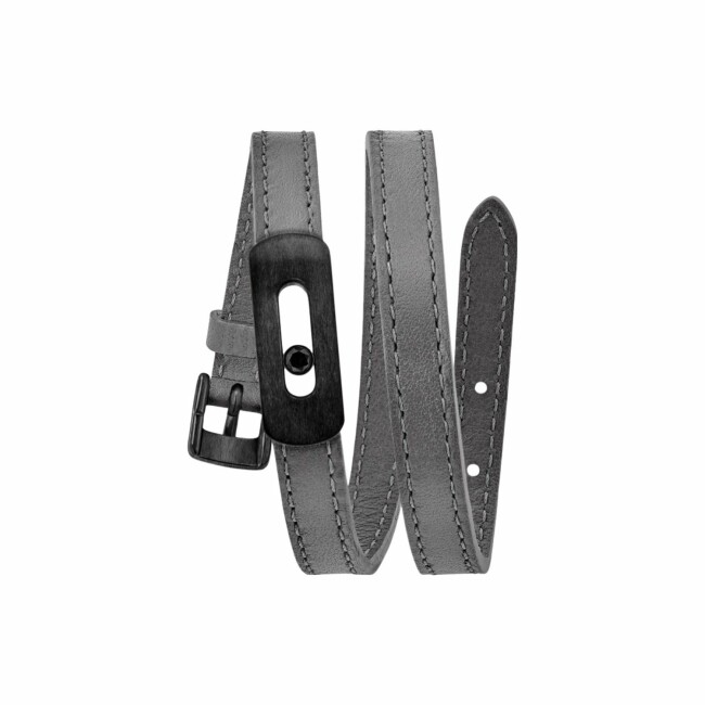 My Move Bracelet Messika My Move en titane total black et diamant sur cuir gris graphite