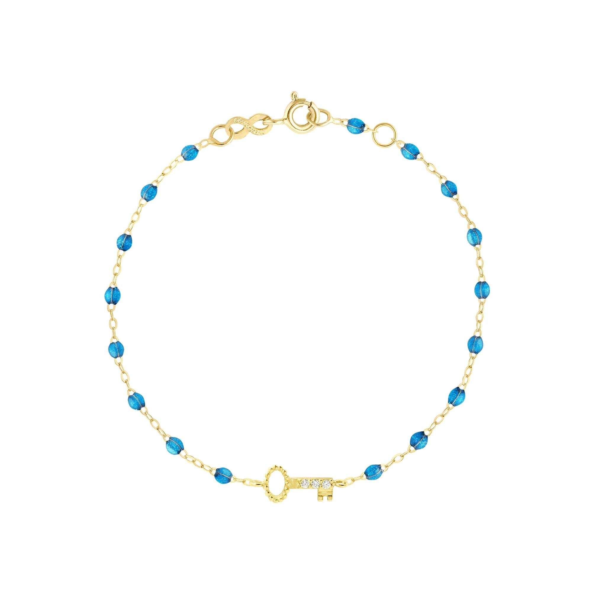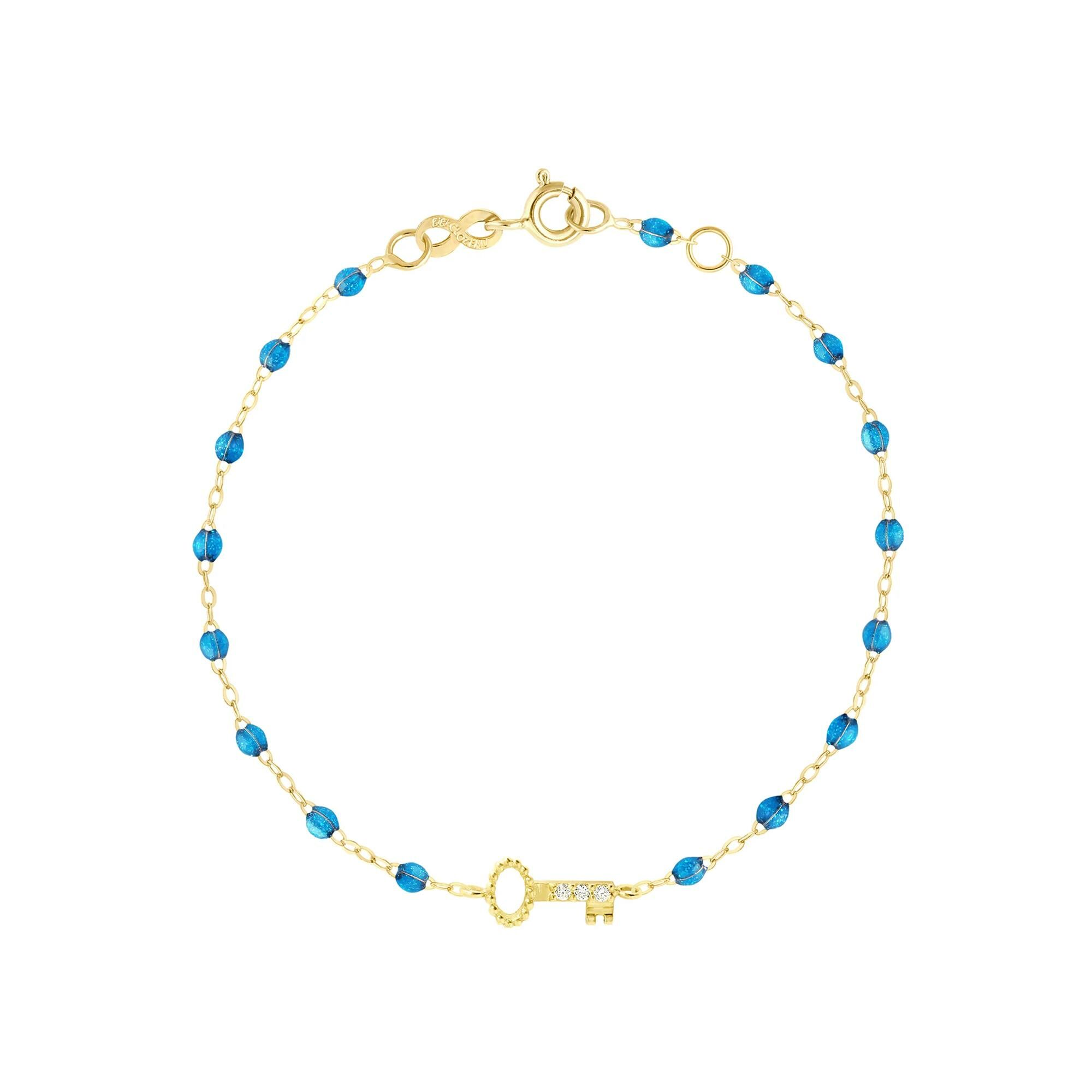 Bracelet Gigi Clozeau Clé en or jaune, résine azur et diamants, taille 17cm
