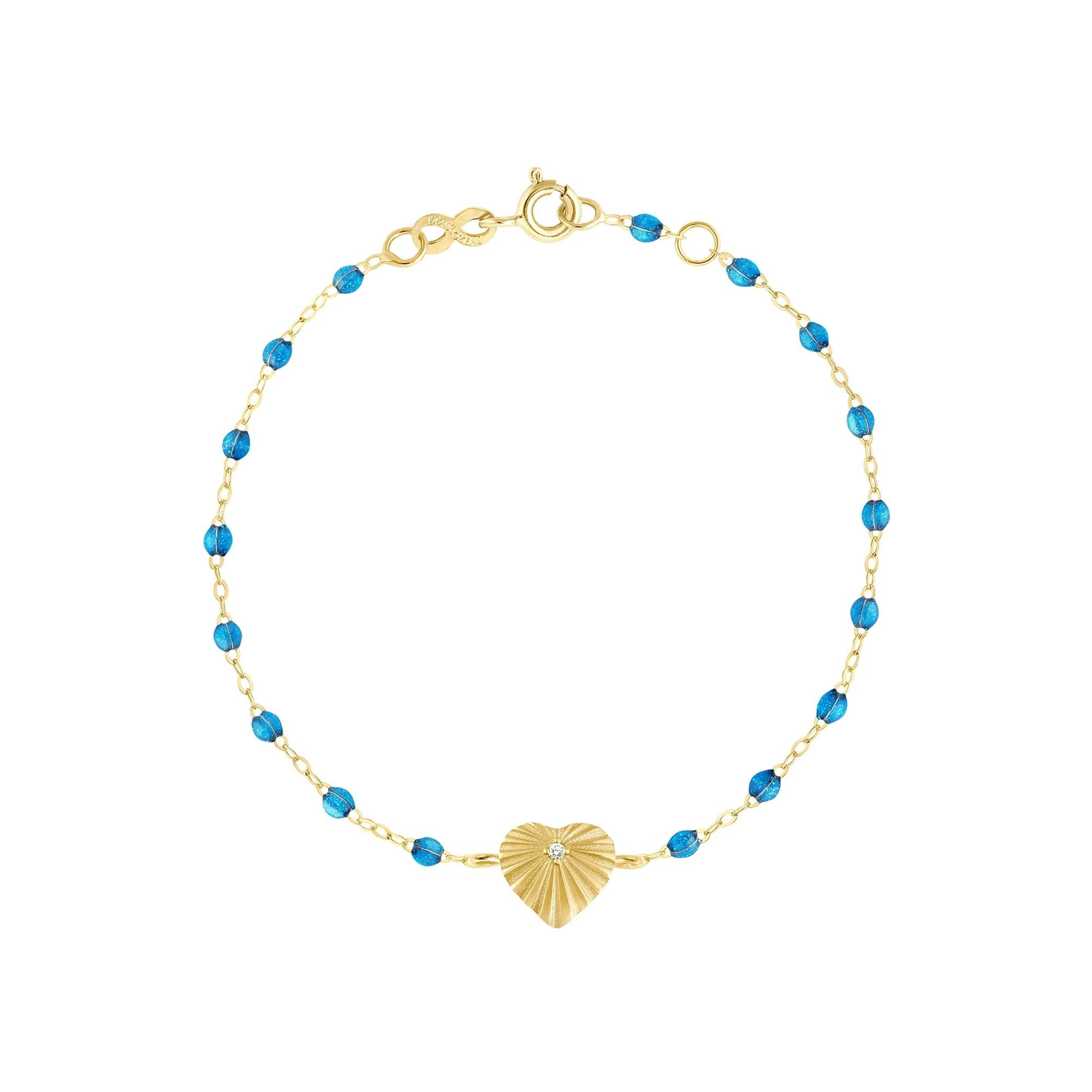 Bracelet Gigi Clozeau Cœur Lumière en or jaune, résine azur et diamants, taille 17cm