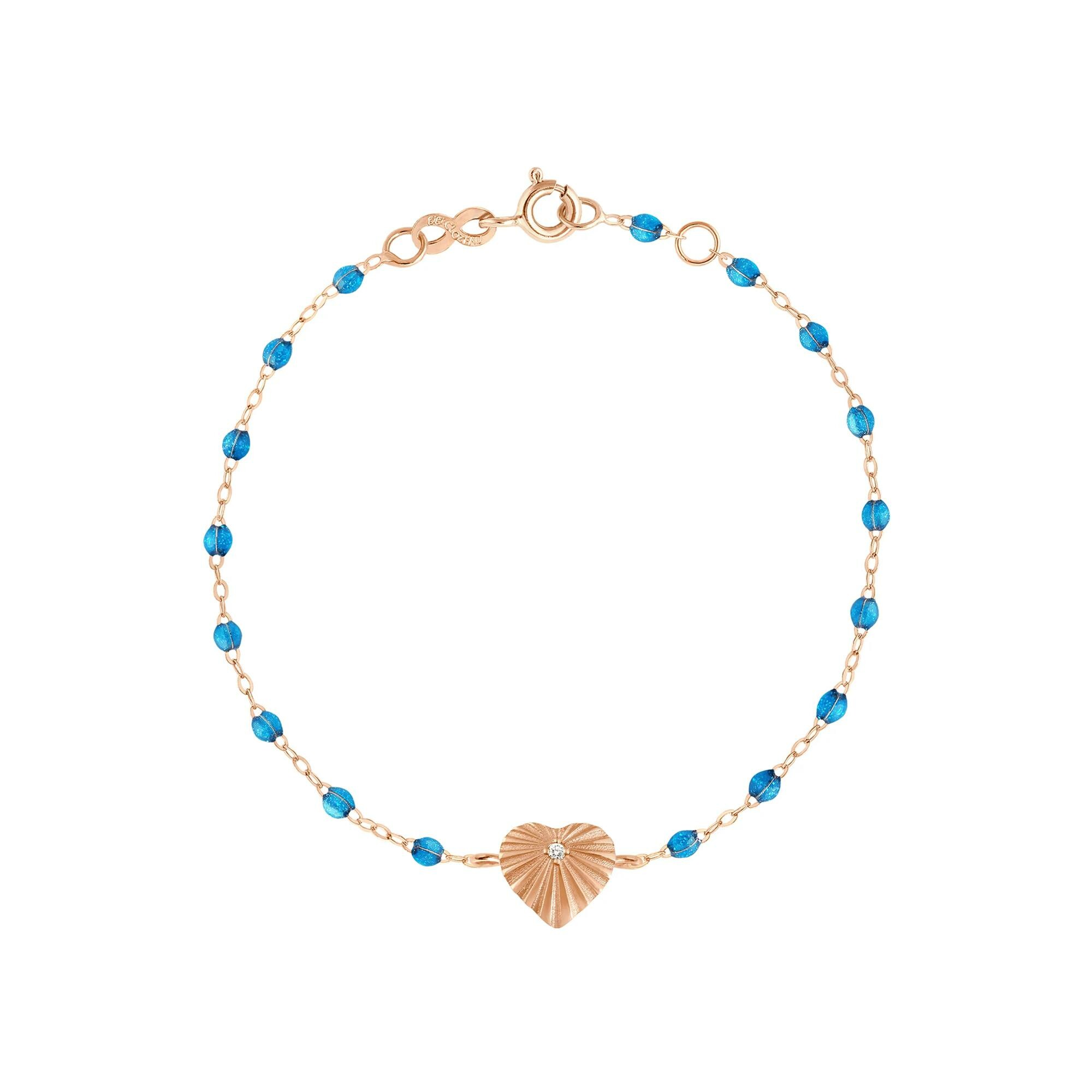 Bracelet Gigi Clozeau Cœur Lumière en or rose, résine azur et diamants, taille 17cm