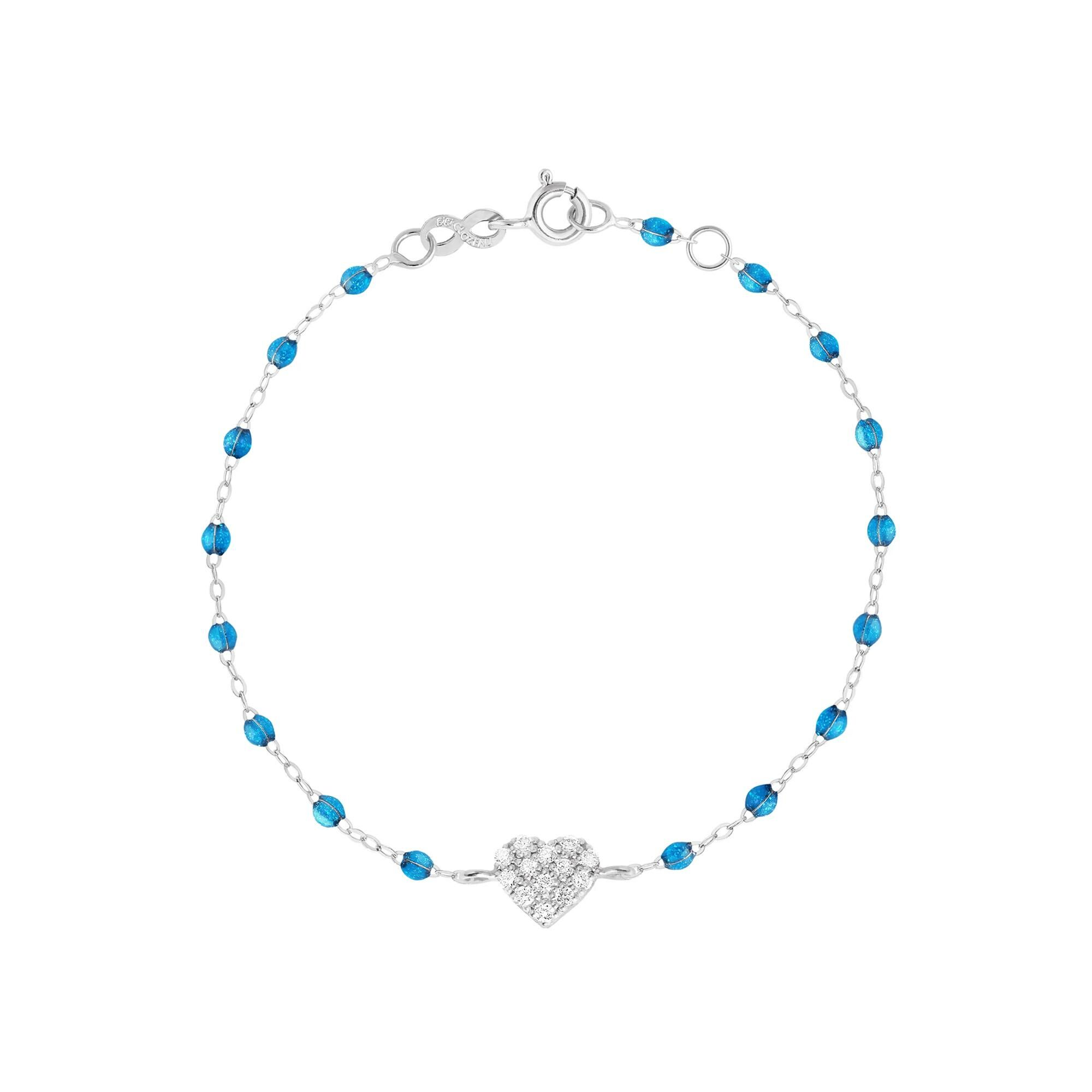 Bracelet Gigi Clozeau In Love en or blanc, résine azur et diamants, taille 17cm