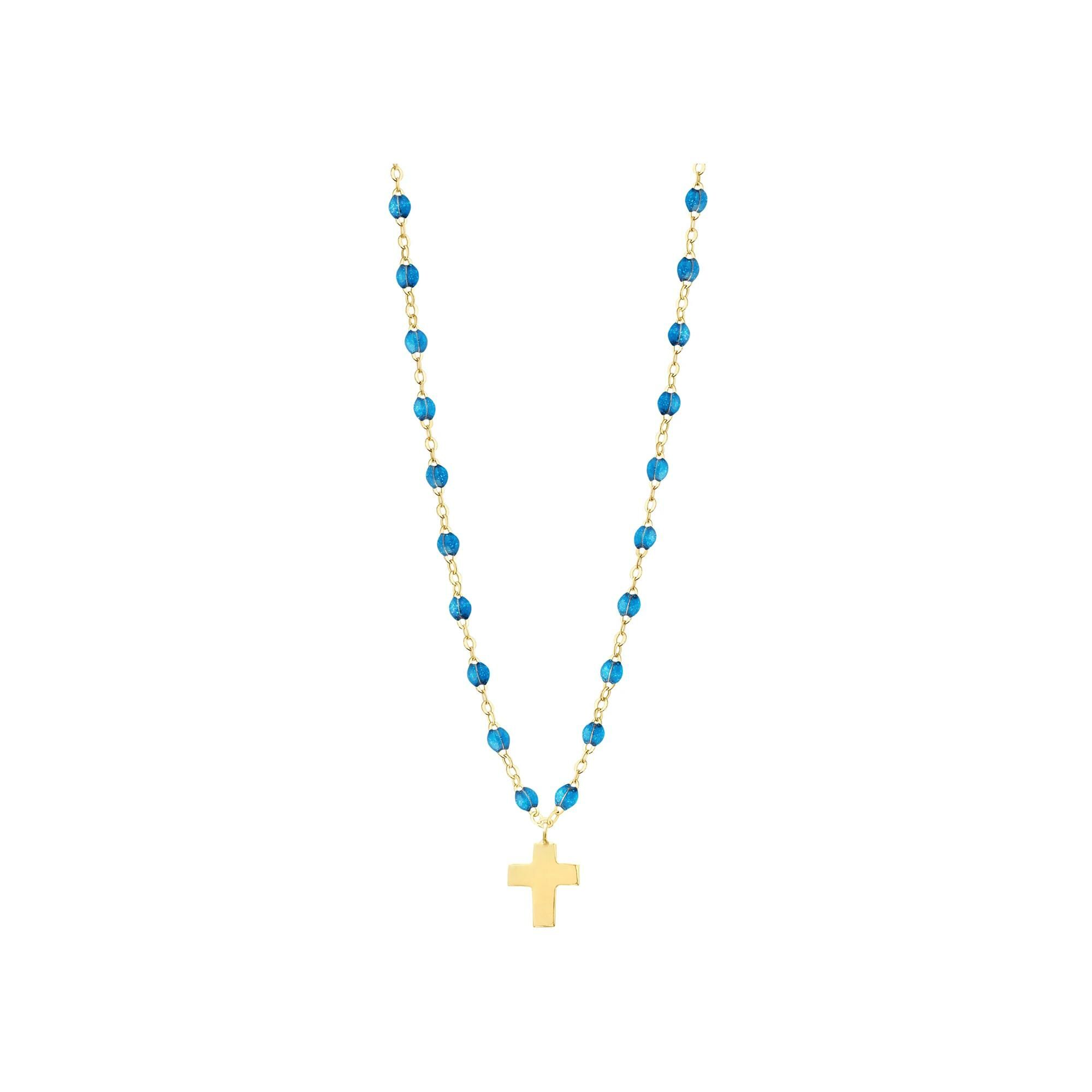 Collier Gigi Clozeau Croix en or jaune et résine azur, taille 42cm