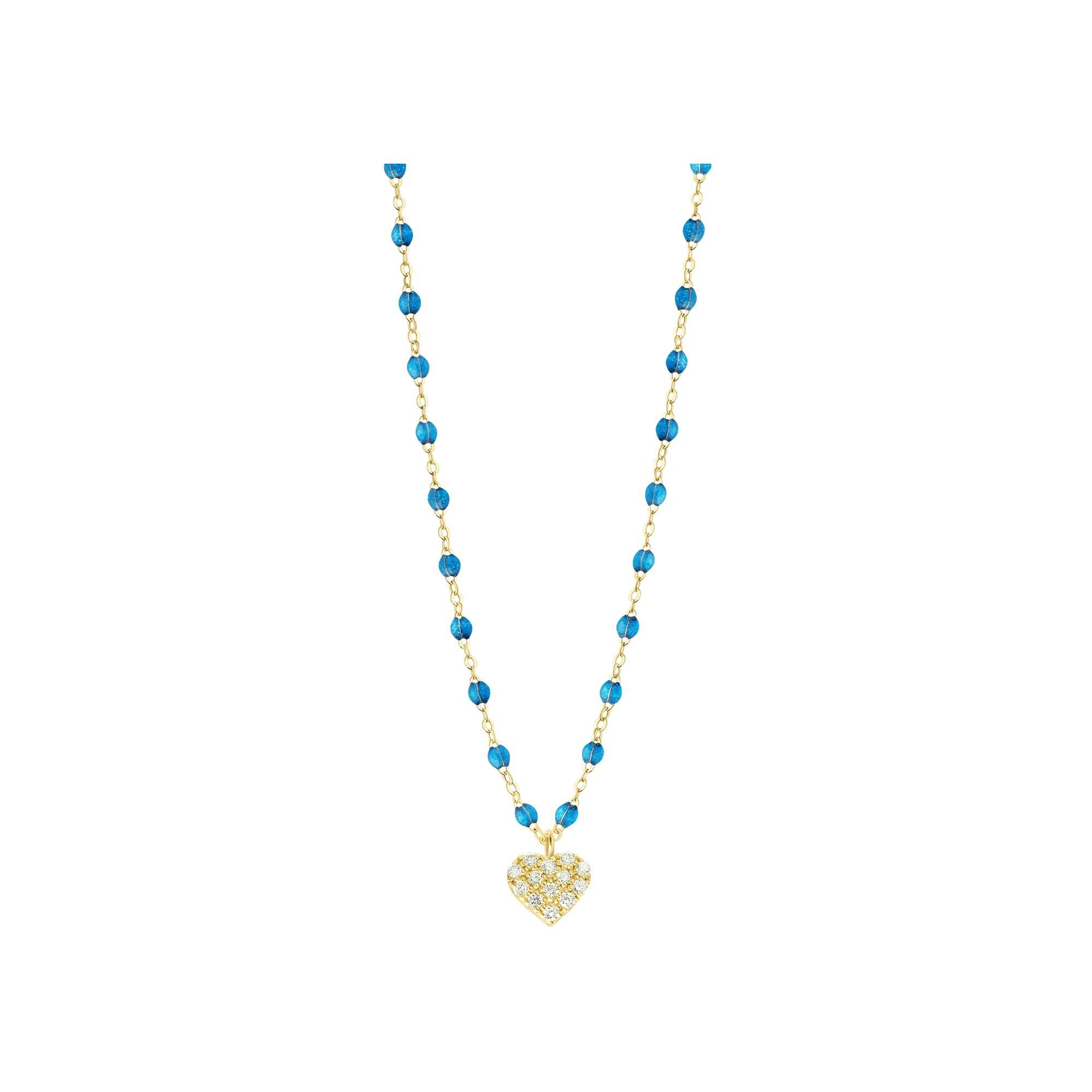Collier Gigi Clozeau In Love en or jaune, résine azur et diamants, taille 42cm