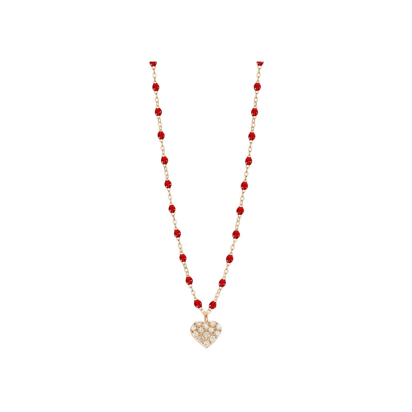 Collier Gigi Clozeau In Love en or rose, résine rubis et diamants, taille 42cm