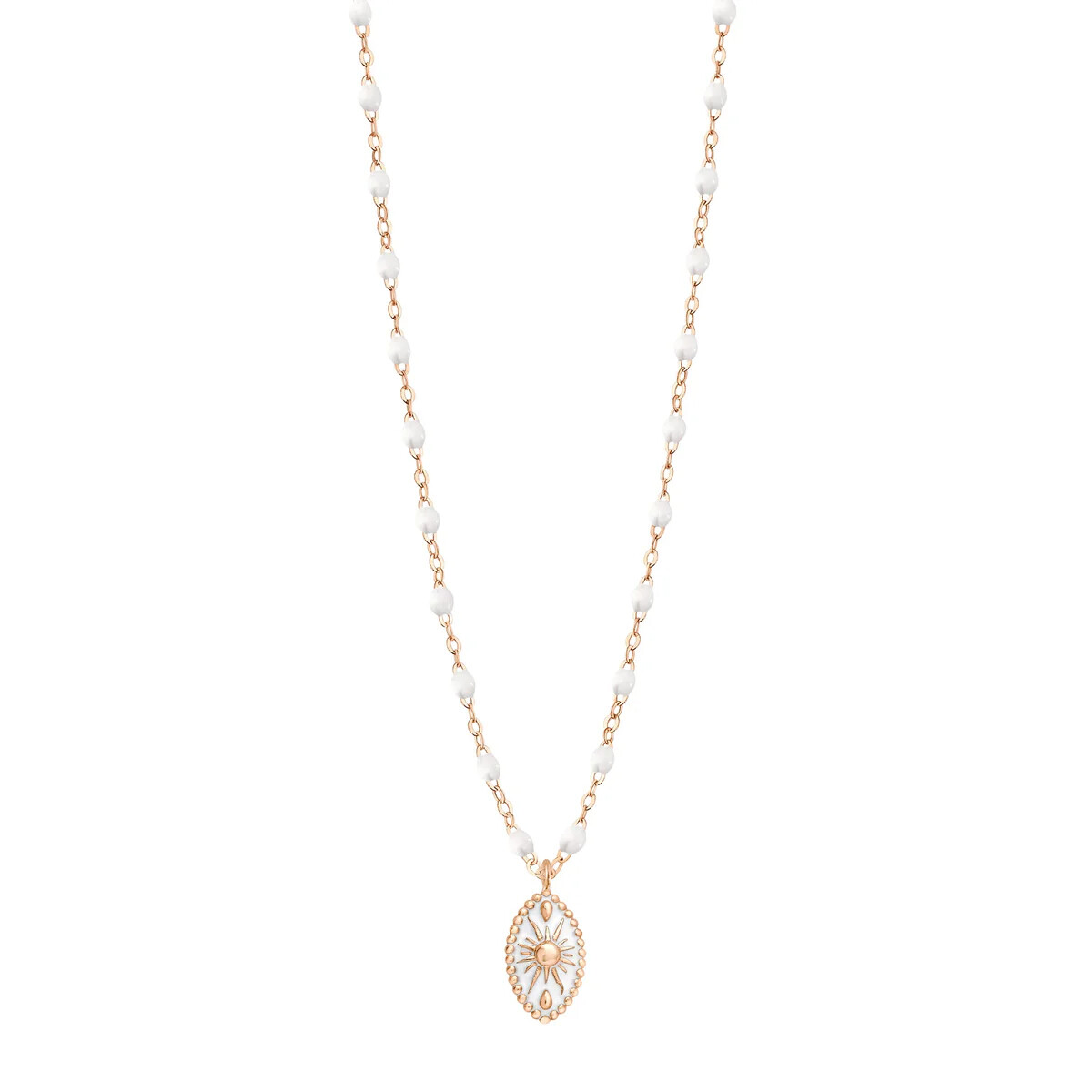 Collier Gigi Clozeau Karma en or rose et résine blanche, 42 cm