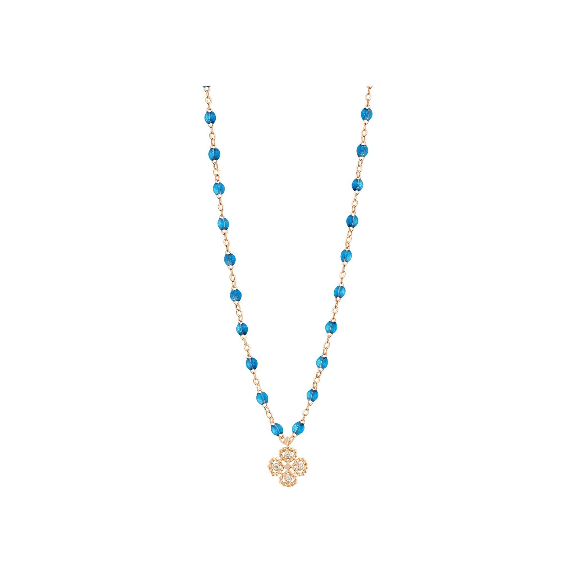 Collier Gigi Clozeau Lucky Trèfle en or rose, résine azur et diamants, taille 42cm