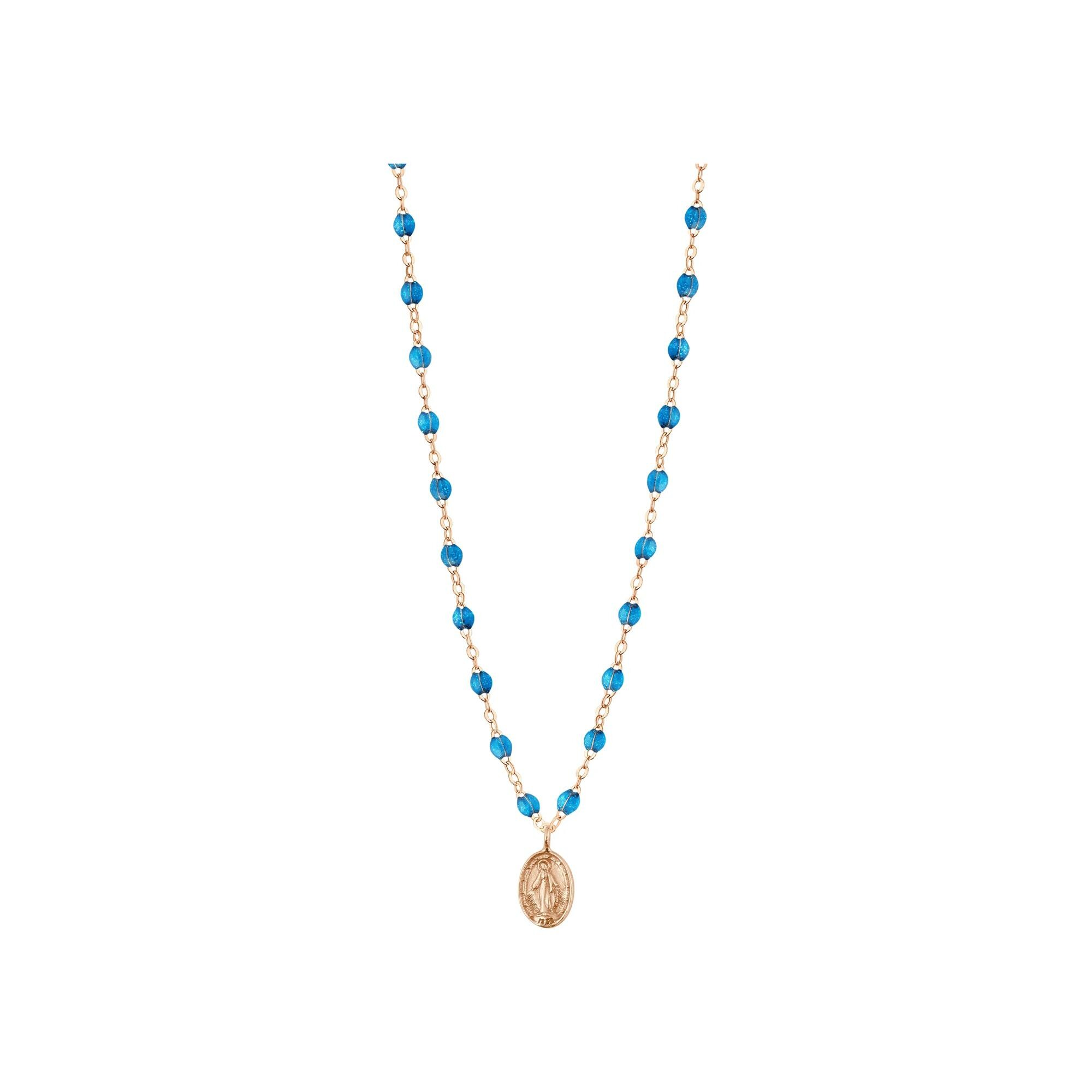 Collier Gigi Clozeau Madone en or rose et résine azur, taille 42cm