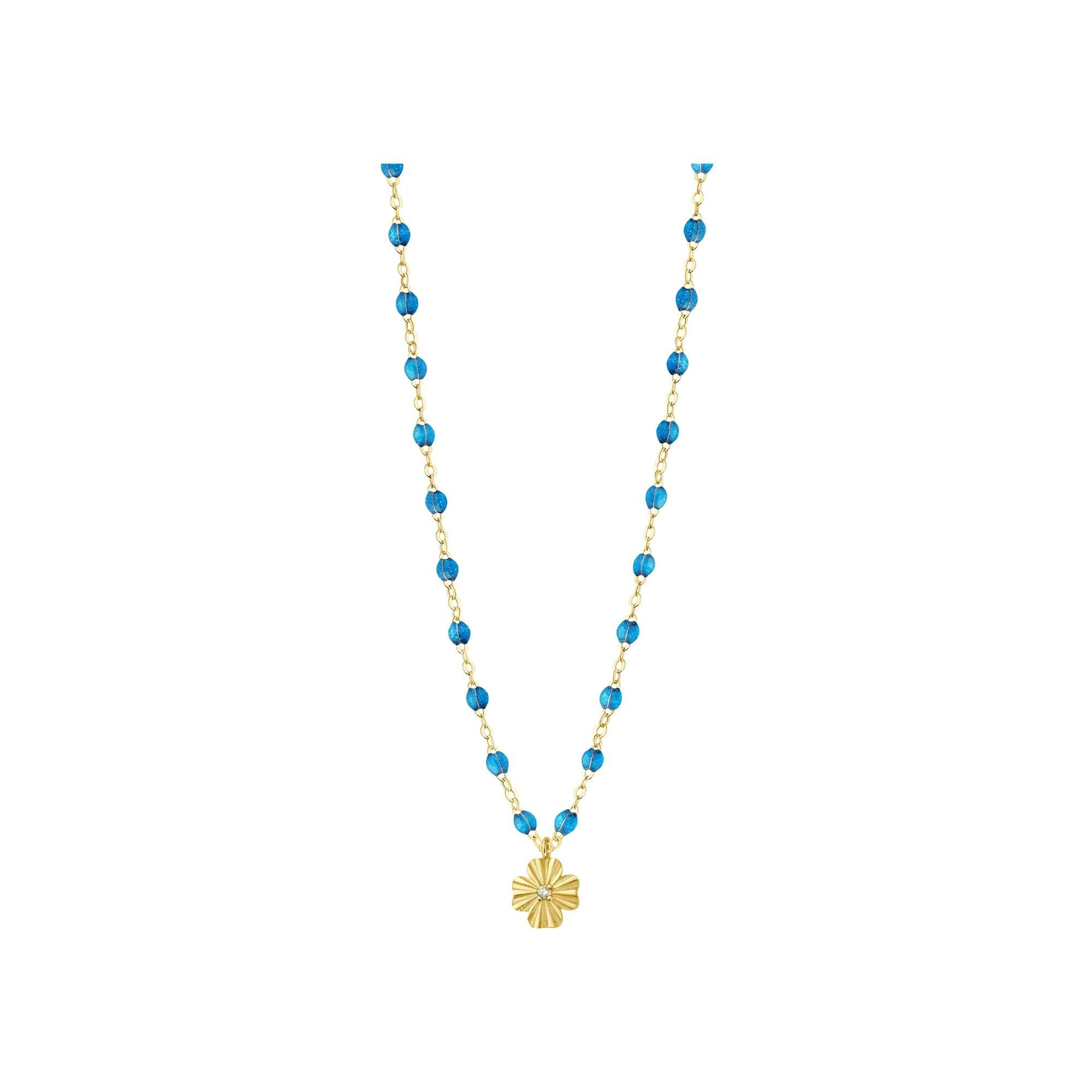Collier Gigi Clozeau Trèfle Lumière en or jaune, résine azur et diamant, 42cm