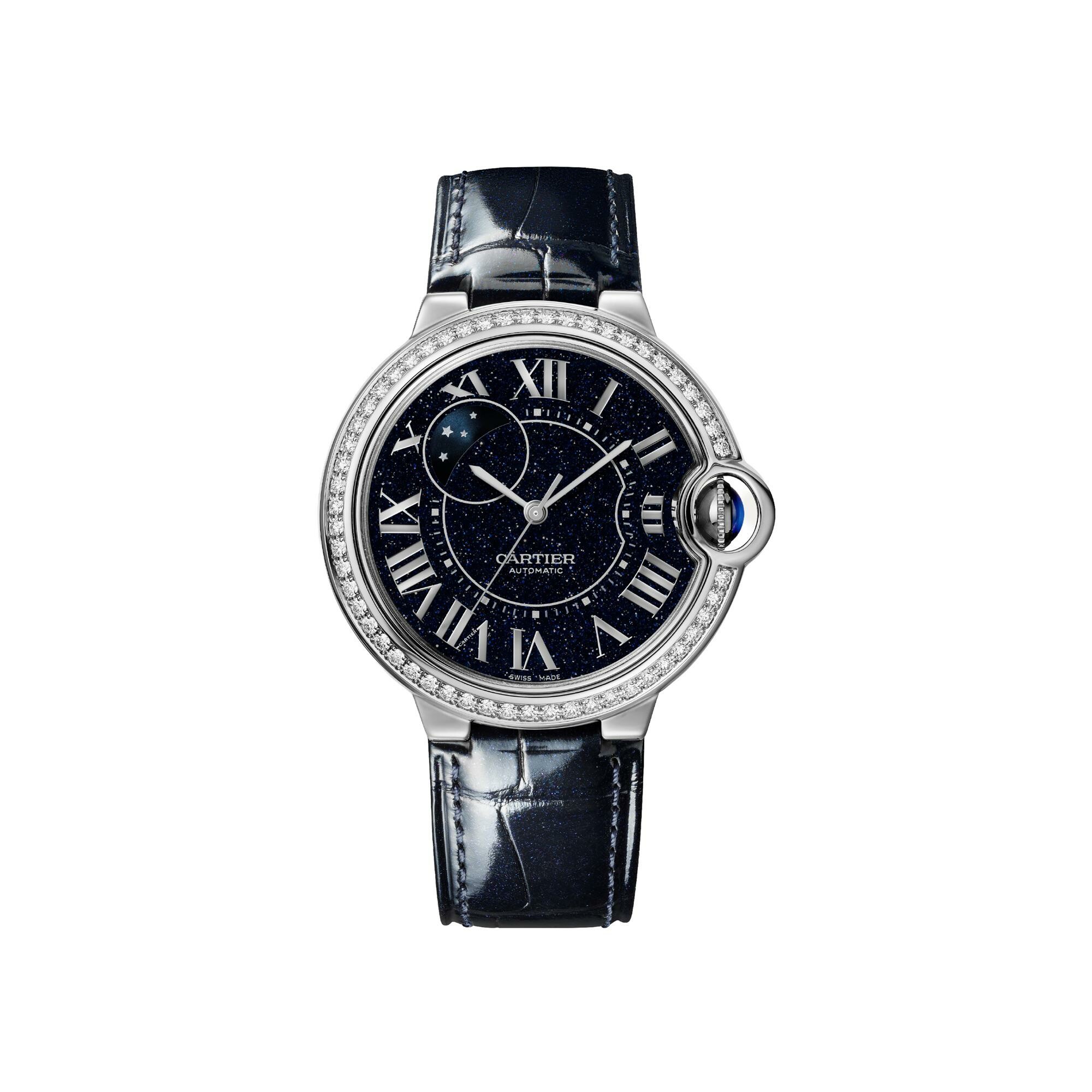 Ballon Bleu de Cartier Montre Ballon Bleu de Cartier 36mm, mouvement automatique, or gris, diamants, cuir