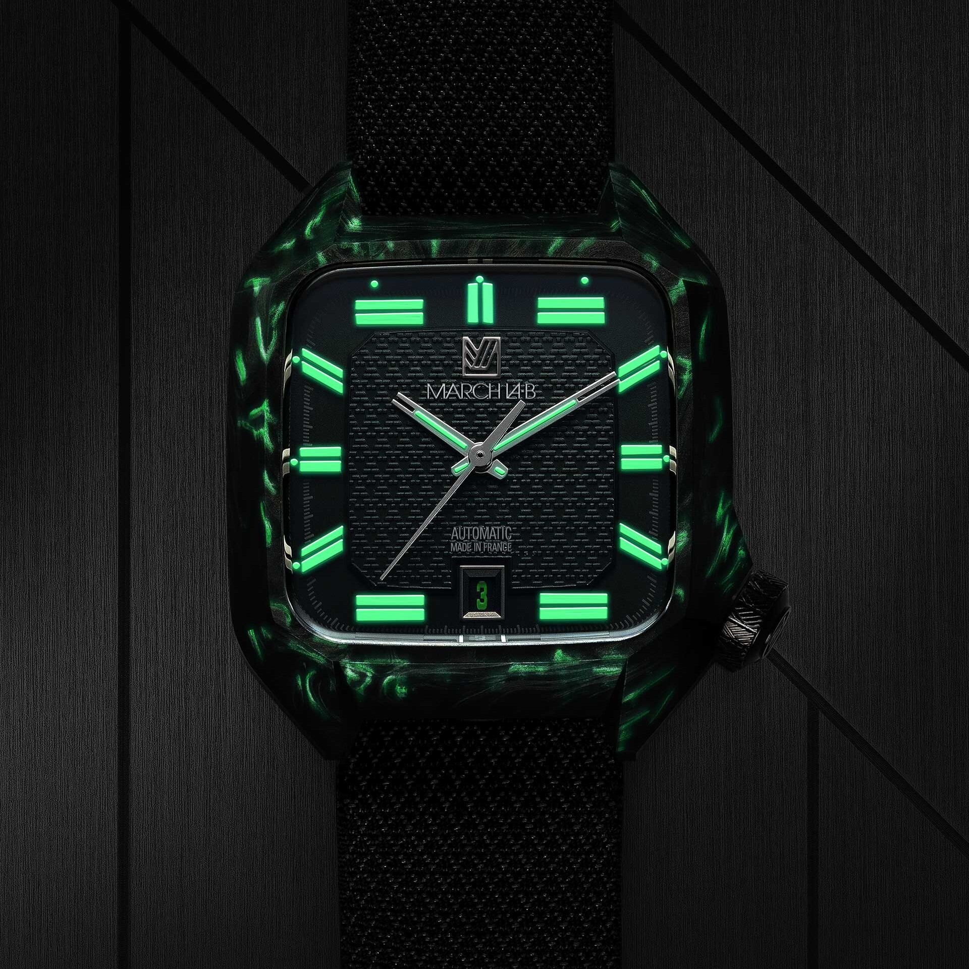 Montre March LA.B Automatique 39 MM - Mars 2026 - Carbone - Jacquard Tissé en France Julien Faure Noir et Vert