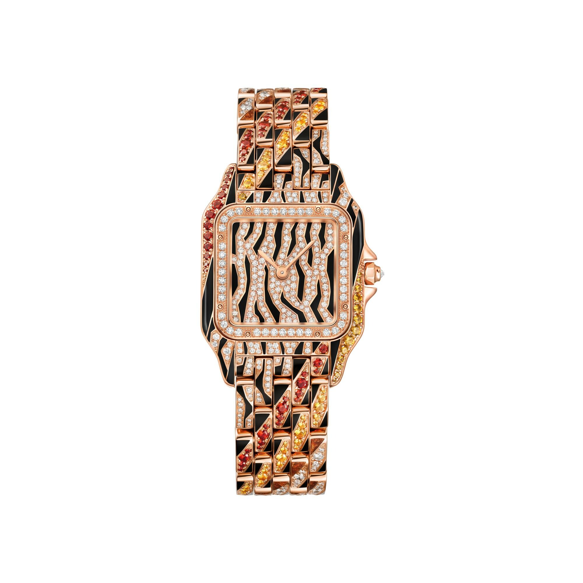 Panthère de Cartier Montre Panthère de Cartier Moyen modèle, mouvement quartz, or rose, diamants, spessartites, laques