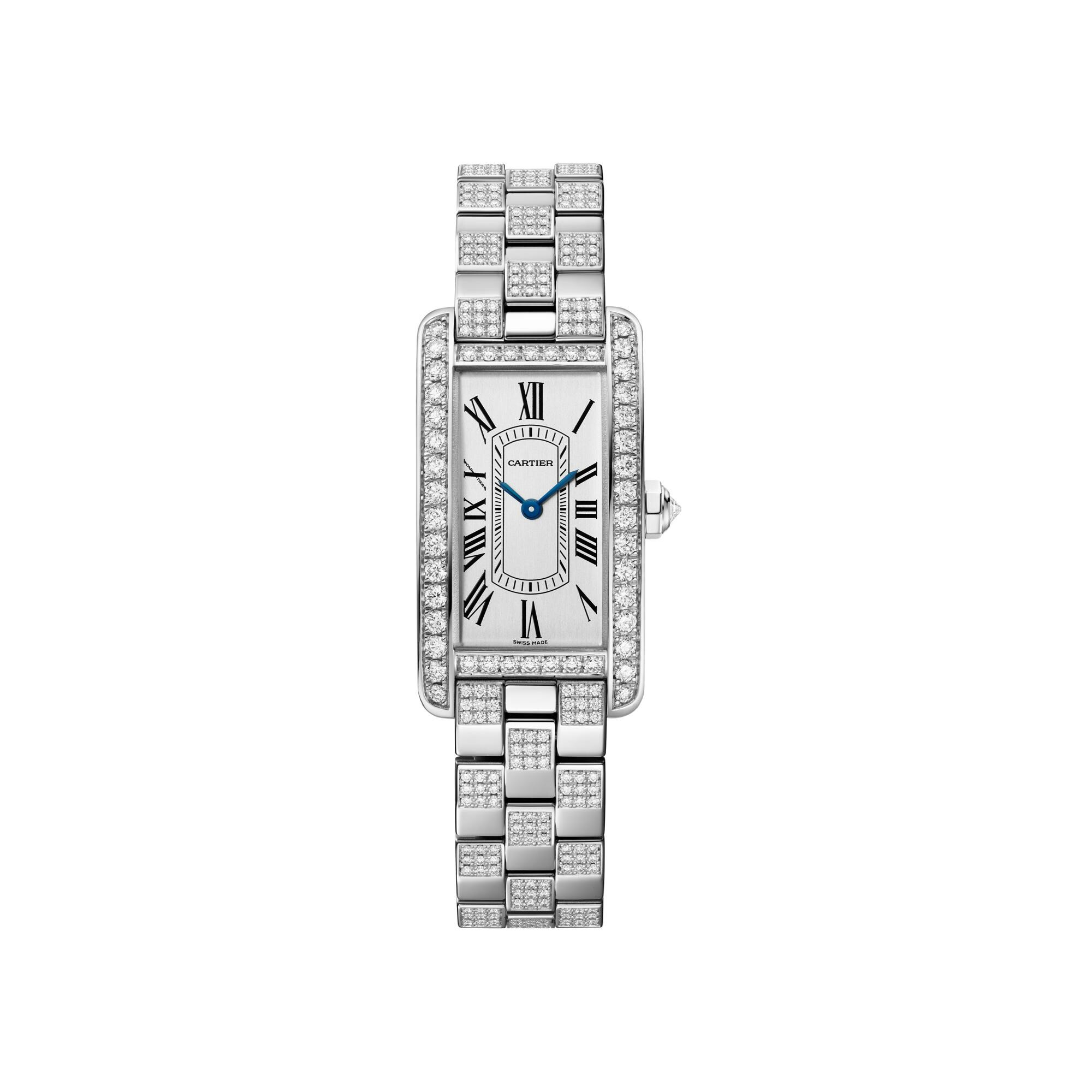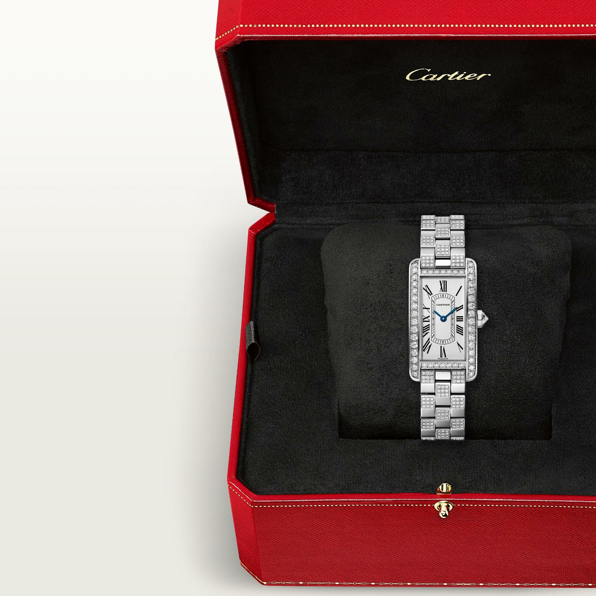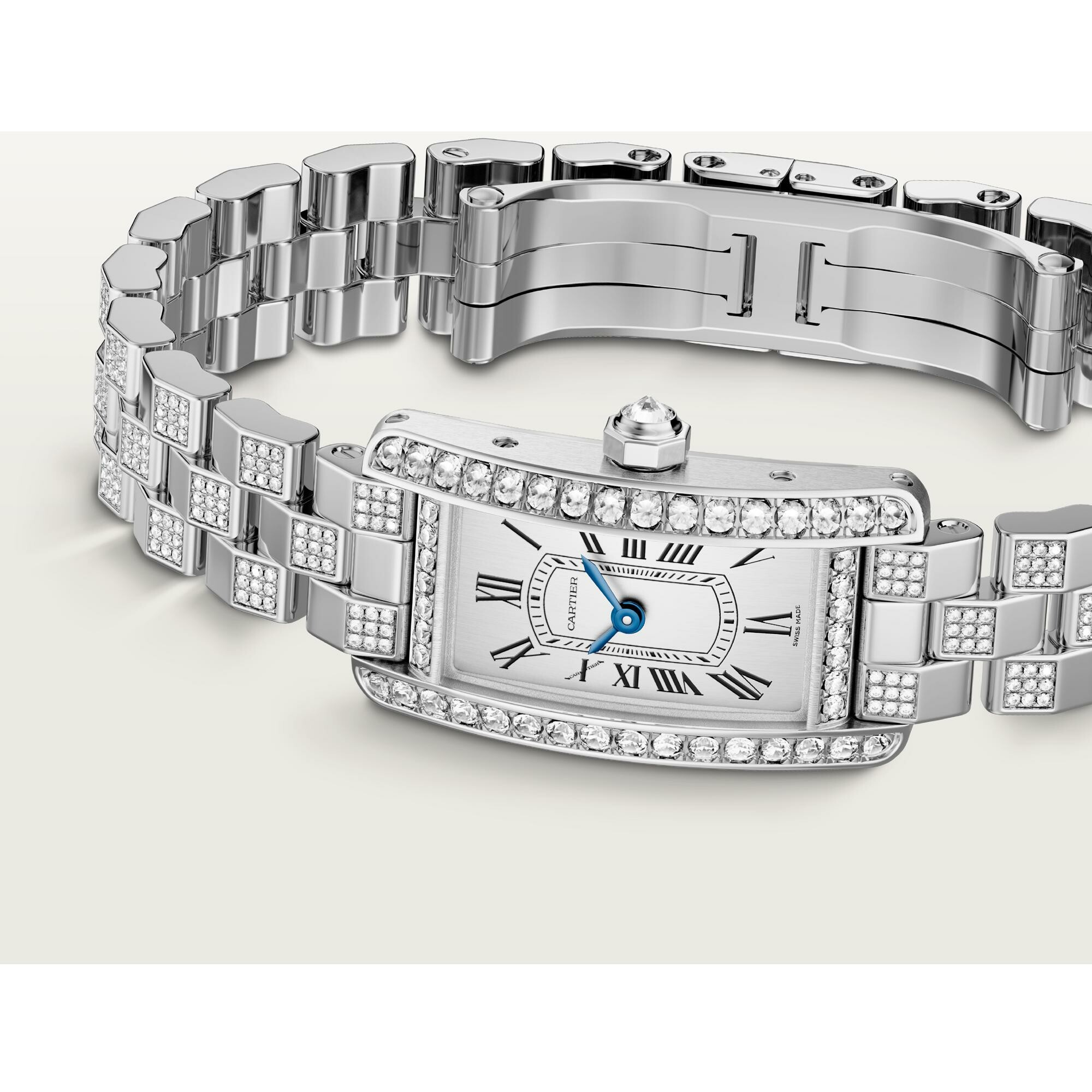 Tank Montre Tank Américaine de Cartier Petit modèle, mouvement quartz - haute autonomie, or gris, diamants