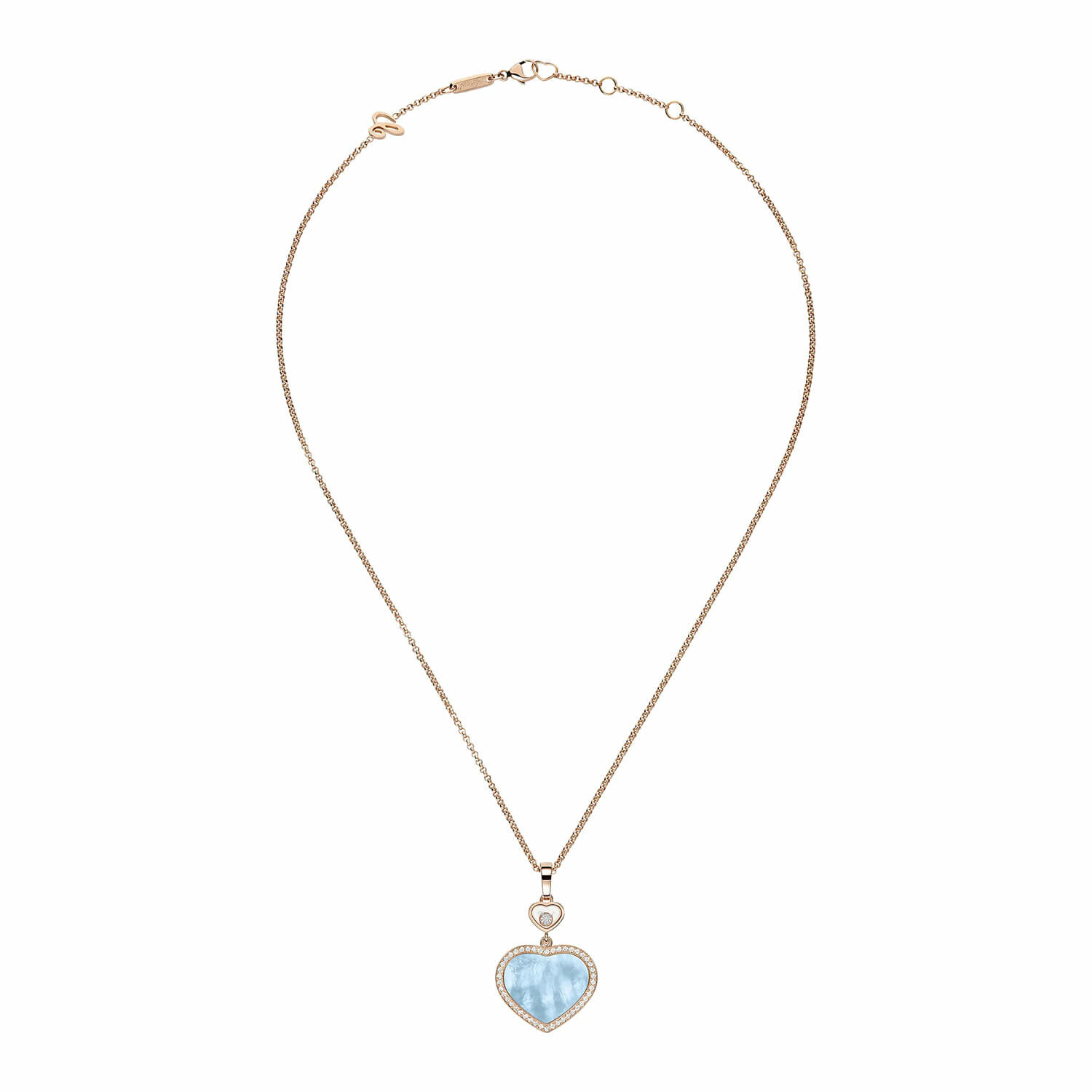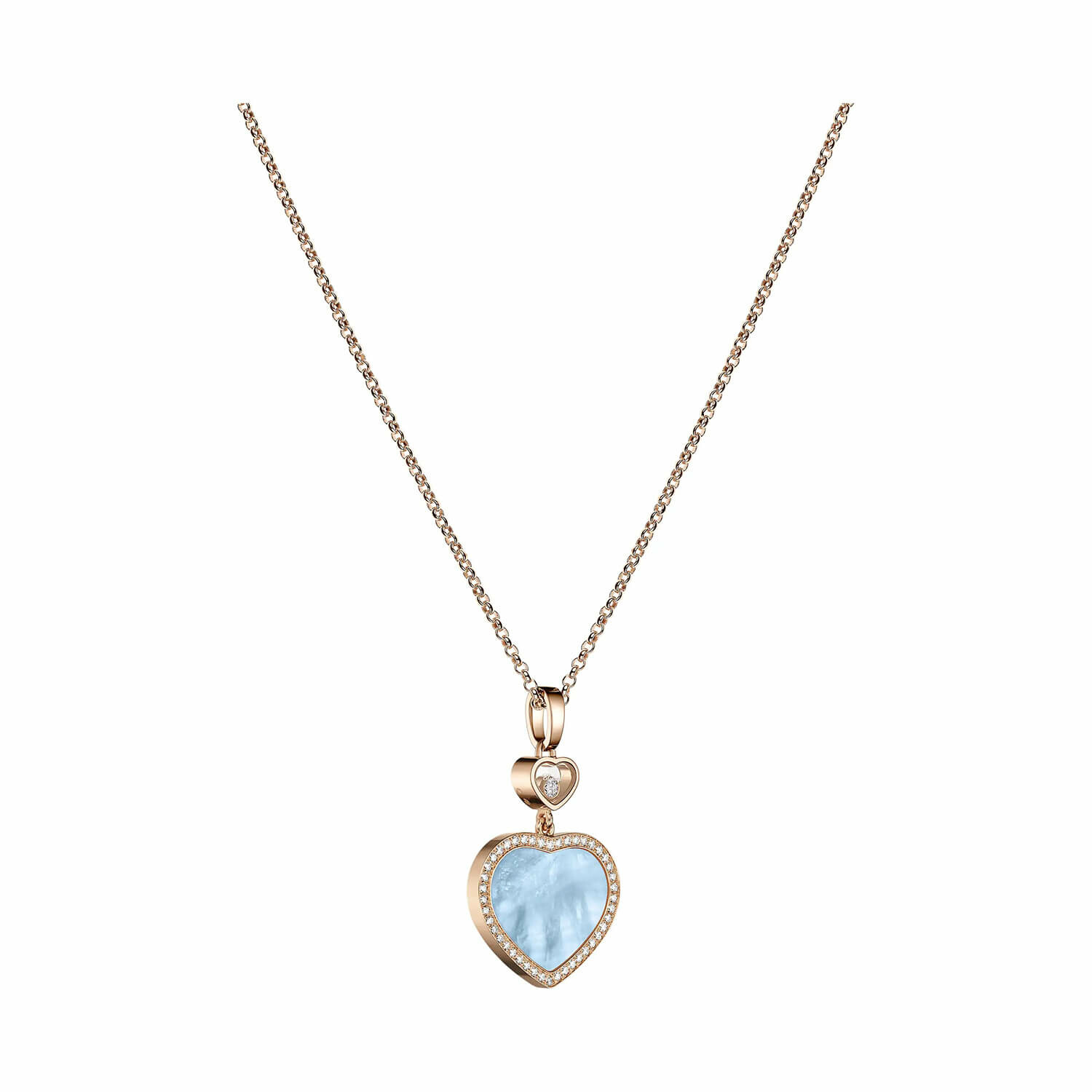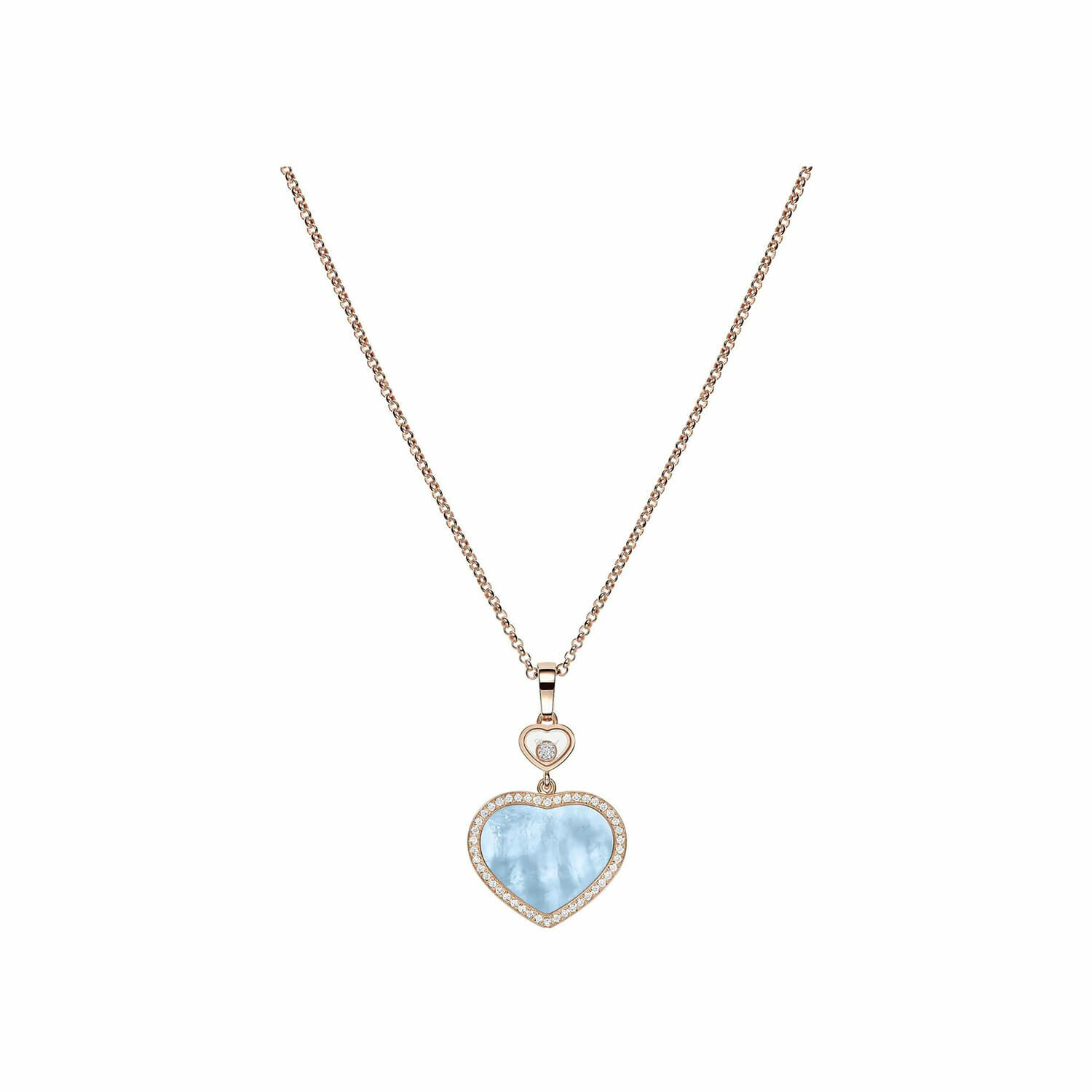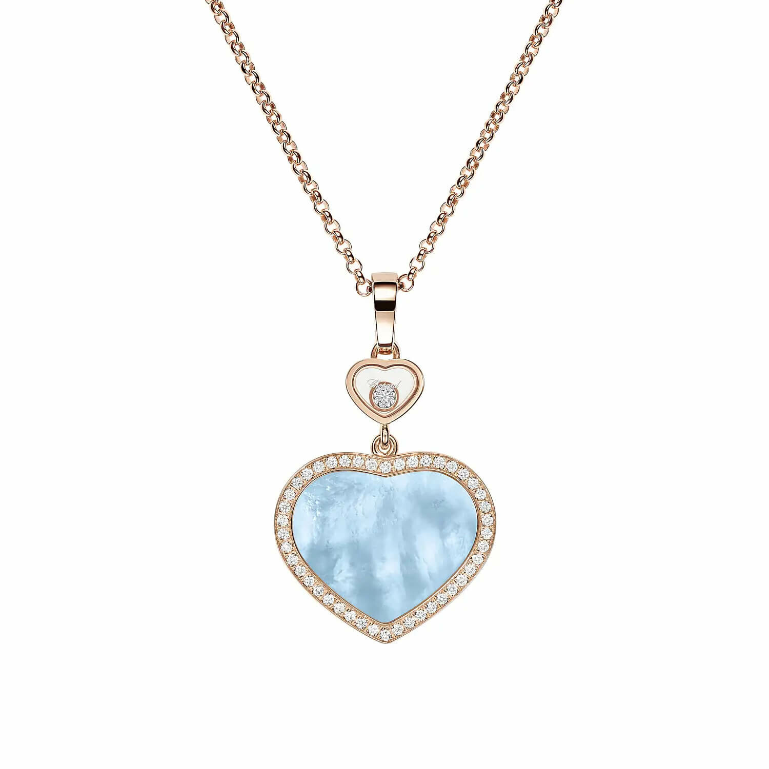 Pendentif Chopard Happy Hearts en or rose, diamants et nacre turquoise